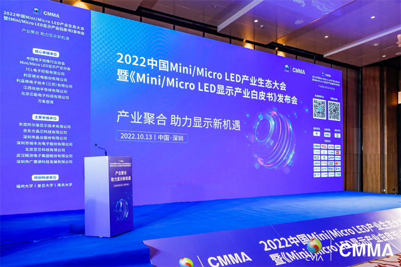 10月13日, 由中國電子視像行業(yè)協(xié)會Mini/Micro LED顯示產(chǎn)業(yè)分會(CMMA)主辦的“2022中國Mini/Micro LED產(chǎn)業(yè)生態(tài)大會”在深圳凱悅酒店盛大召開。本次大會以“產(chǎn)業(yè)聚合 助力顯示新機(jī)遇”為主題,旨在聚集產(chǎn)業(yè)鏈上中下游企業(yè),促進(jìn)產(chǎn)業(yè)生態(tài)創(chuàng)新升級,助推新型顯示技術(shù)發(fā)展。